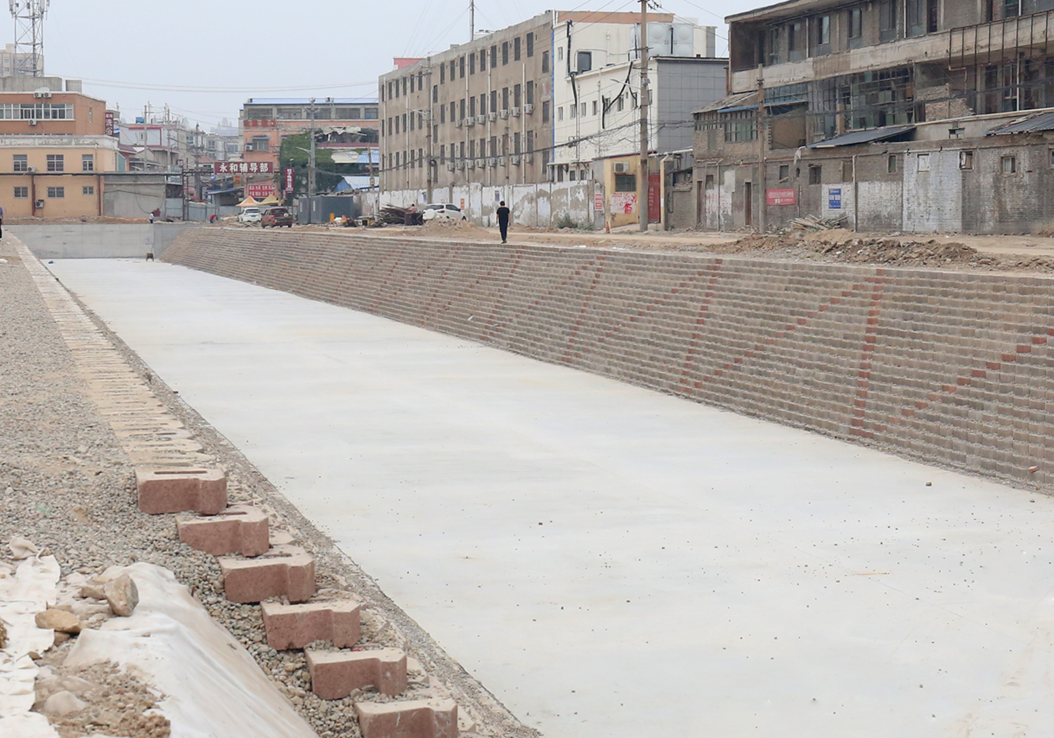 此次改造基于渠道原址,項(xiàng)目北起涑水街,南至火車站站北調(diào)節(jié)池西側(cè)提水泵站,全長4.26公里,批復(fù)主要建設(shè)內(nèi)容為:1、明渠段治理2.06千米;2、暗涵段清淤1.84千米;3、站北調(diào)節(jié)池出口段治理0.362千米;4、東留調(diào)節(jié)池及站北調(diào)節(jié)池治理;5、綠化2.6萬平方米;6、埋設(shè)排污管道11.63千米;7、中水回用工程及生態(tài)補(bǔ)水工程等。