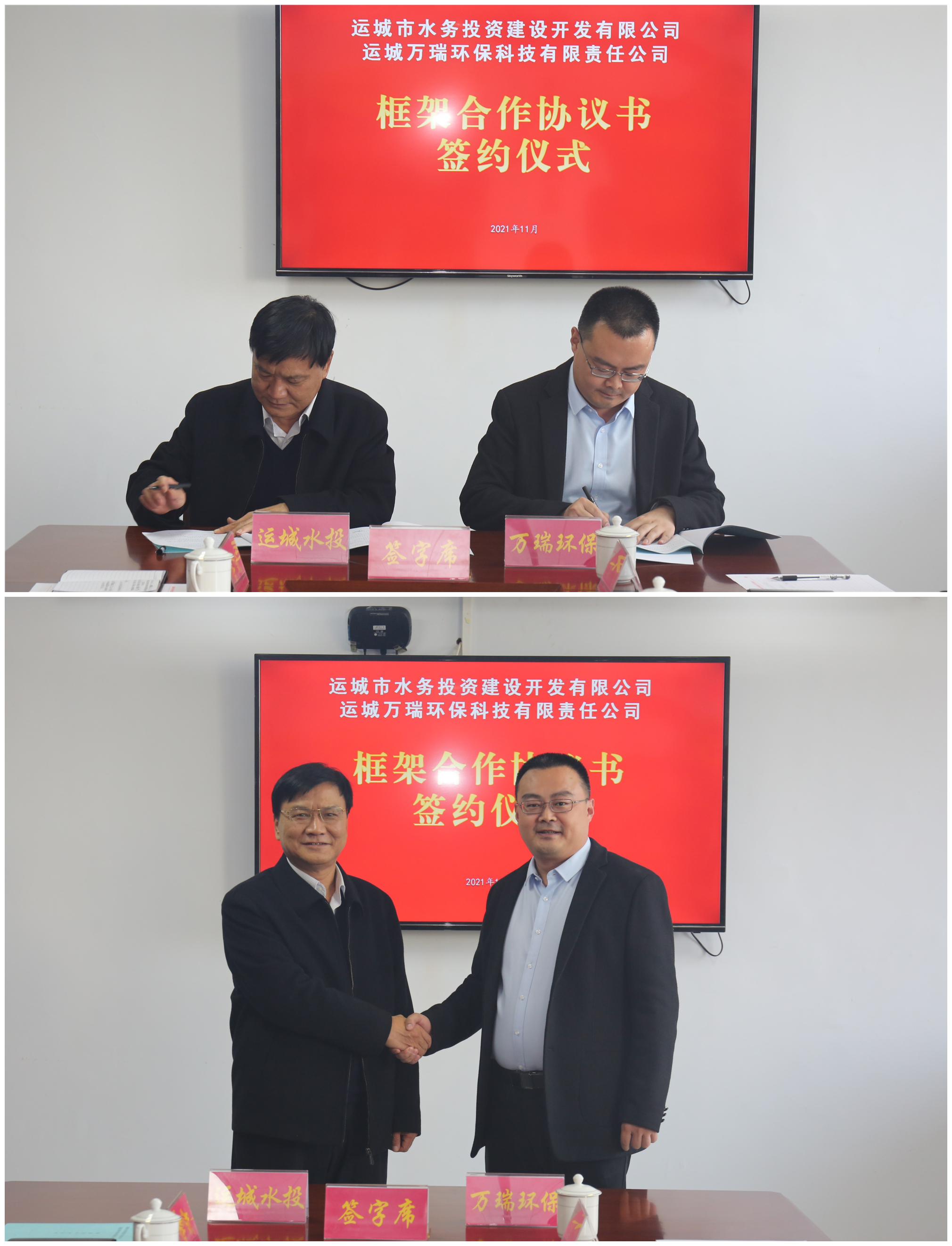 11月5日,運(yùn)城市水務(wù)投資建設(shè)開發(fā)有限公司(以下簡(jiǎn)稱市水投公司)與運(yùn)城萬(wàn)瑞環(huán)??萍加邢挢?zé)任公司(以下簡(jiǎn)稱萬(wàn)瑞環(huán)保公司)框架合作協(xié)議簽約儀式,在市水投公司隆重舉行。
