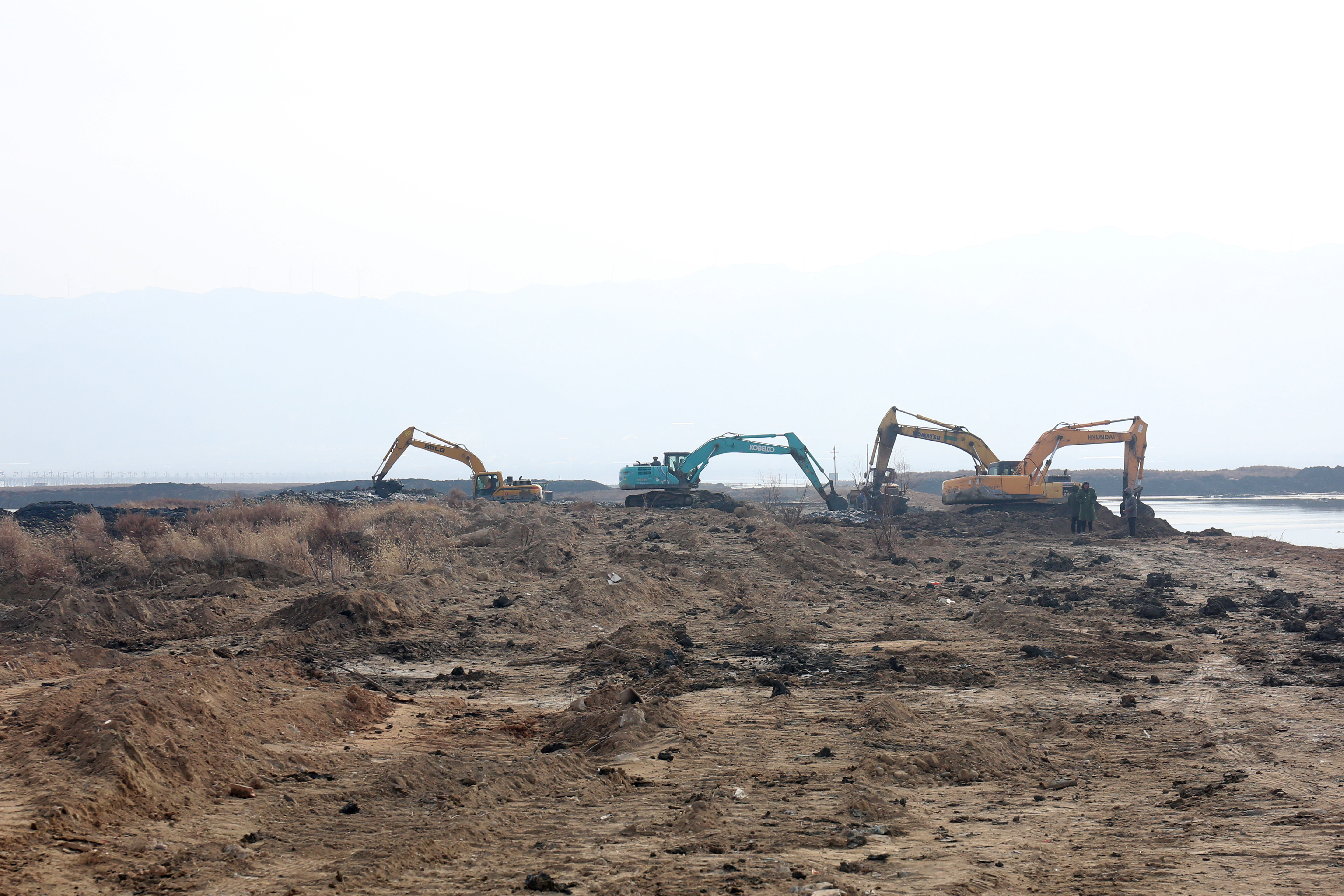 每到一處,詳細詢問施工人員康復情況、查看工地建設情況。干河清水復流段到處都是忙碌的工人,有安裝鋼壩閘的,有貼花崗巖的,有安裝欄桿的等;鹽湖生態(tài)治理工地上機械轟鳴,挖掘機、鏟車、挖泥船等20余臺大型機械有序運作,施工人員搶抓工期,處處涌動著建設熱潮。