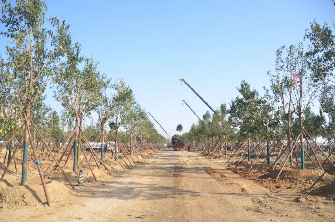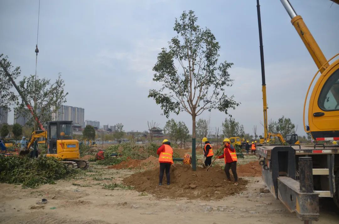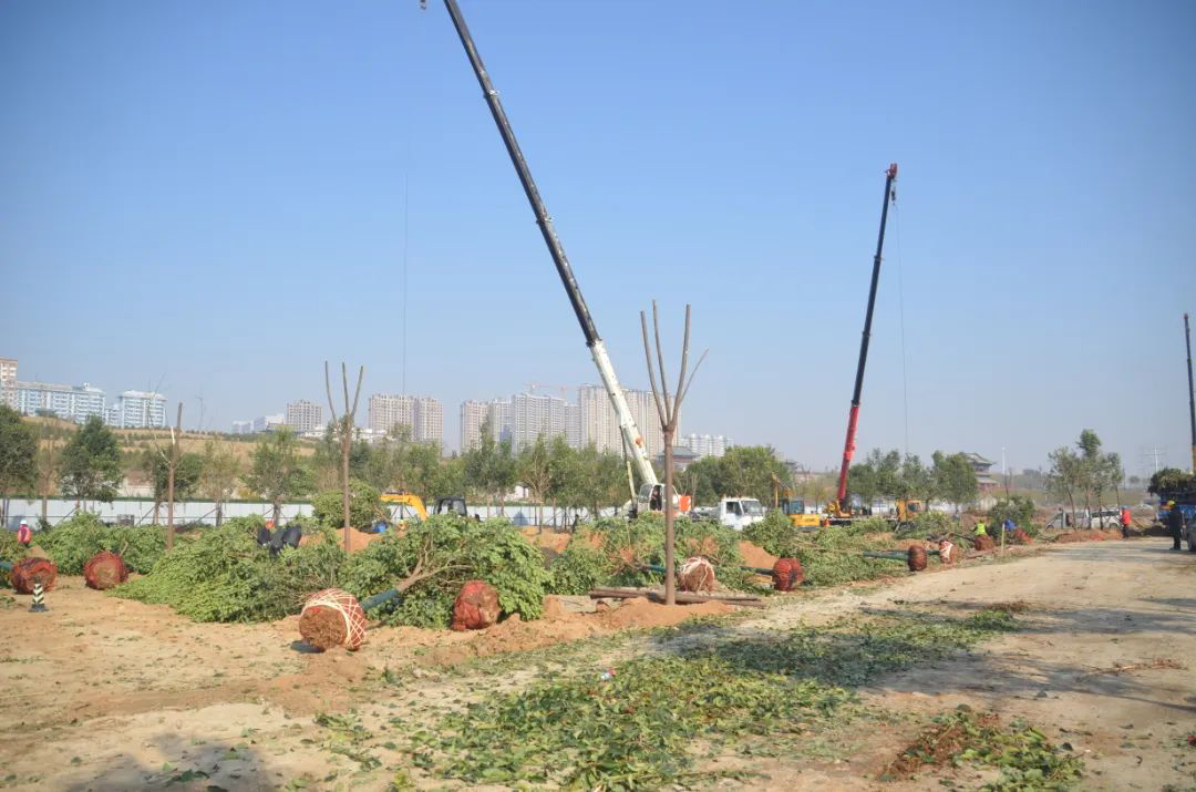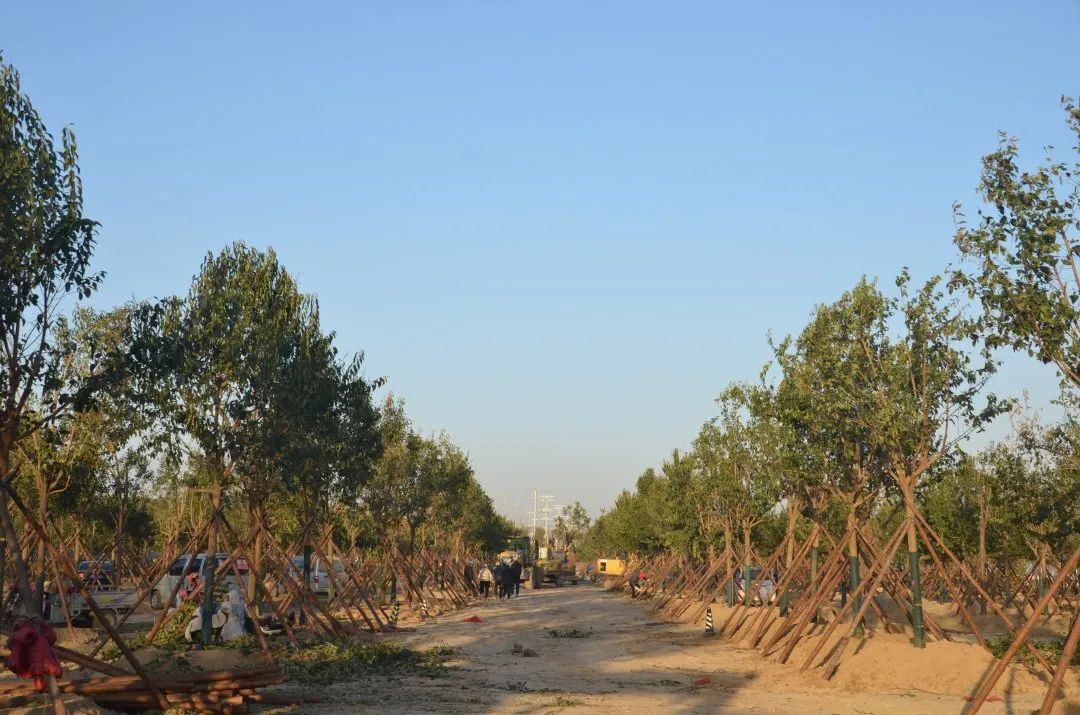 施工現(xiàn)場,大型機械集中作業(yè),挖掘機、裝載機、吊裝機和運輸車來回穿梭,九十余名工人辛勤勞作,相互配合,干勁十足,按設計規(guī)定放線挖坑、吊裝樹木、培土壓實,防護林建設有序進行。栽植過程中,多次討論研究,結合鹽池生態(tài)環(huán)境,統(tǒng)籌考慮,因地制宜選擇當?shù)卦灾矘浞N,目前已種植國槐、榆樹、大葉女貞、紅葉石楠、大葉黃楊、金森女貞、麥冬等各類喬灌木草種共計700余株,綠化種植面積2萬多平米,綠化建設將進一步對鹽湖北側岸帶生態(tài)系統(tǒng)起到很好的防護作用。