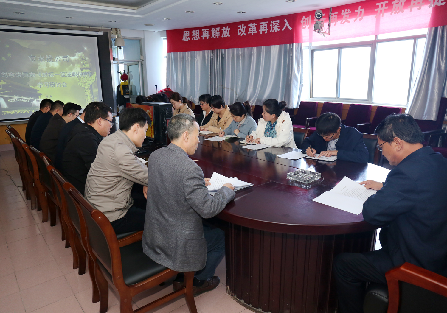 4月8日上午,根據(jù)市委大討論領導組安排部署,我公司召開市委書記劉志宏同志《對標一流述職報告》學習研討會,公司班子成員及全體員工參加會議。