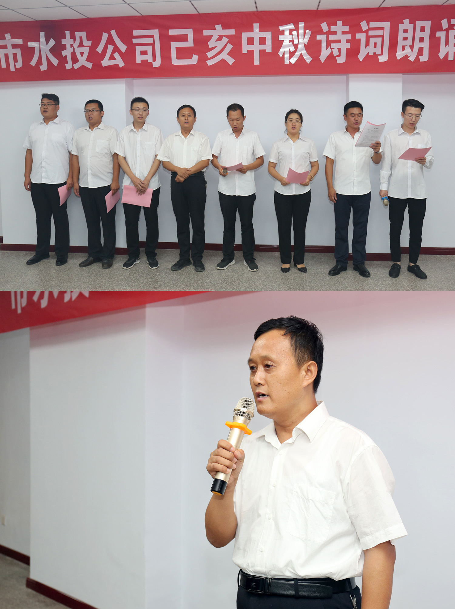朗誦會(huì)開始前,公司黨委書記、董事長(zhǎng)兼總經(jīng)理崔作銘致辭,向為水投建設(shè)發(fā)展辛勤耕耘默默奉獻(xiàn)的全體員工致以誠(chéng)摯的問(wèn)候和衷心的感謝,同時(shí)預(yù)祝各位員工中秋佳節(jié)快樂家庭幸福、身體健康。他希望全體員工“守初心、擔(dān)使命,找差距、抓落實(shí)”,以“長(zhǎng)風(fēng)破浪會(huì)有時(shí),直掛云帆濟(jì)滄海”的豪情,以“千淘萬(wàn)漉雖辛苦,吹盡狂沙始到金”的毅力,以抓鐵留痕,踏石留印的執(zhí)行精神,再寫傳奇,再譜新篇!