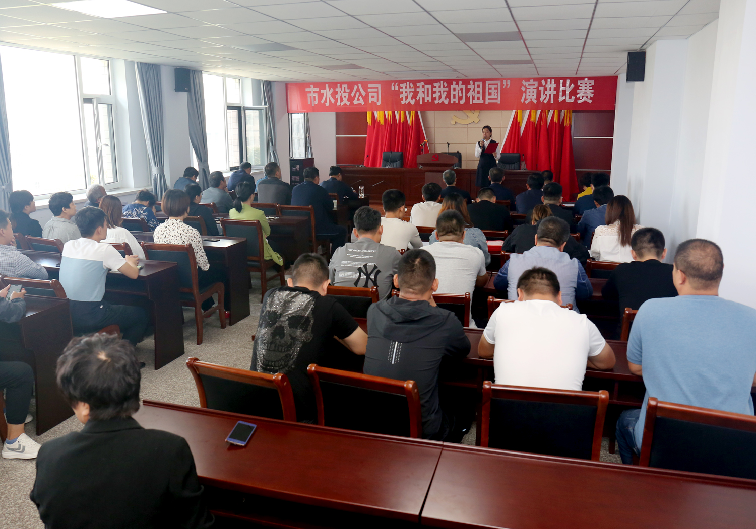 為了熱烈慶祝中華人民共和國成立70周年,扎實(shí)開展“不忘初心、牢記使命”主題教育活動(dòng),9月23日上午,市水投公司在六樓會(huì)議室舉辦“我和我的祖國”演講比賽活動(dòng)。市水投公司及各下屬單位優(yōu)秀代表參加了比賽,公司領(lǐng)導(dǎo)班子成員及各下屬單位班子成員觀看了比賽。