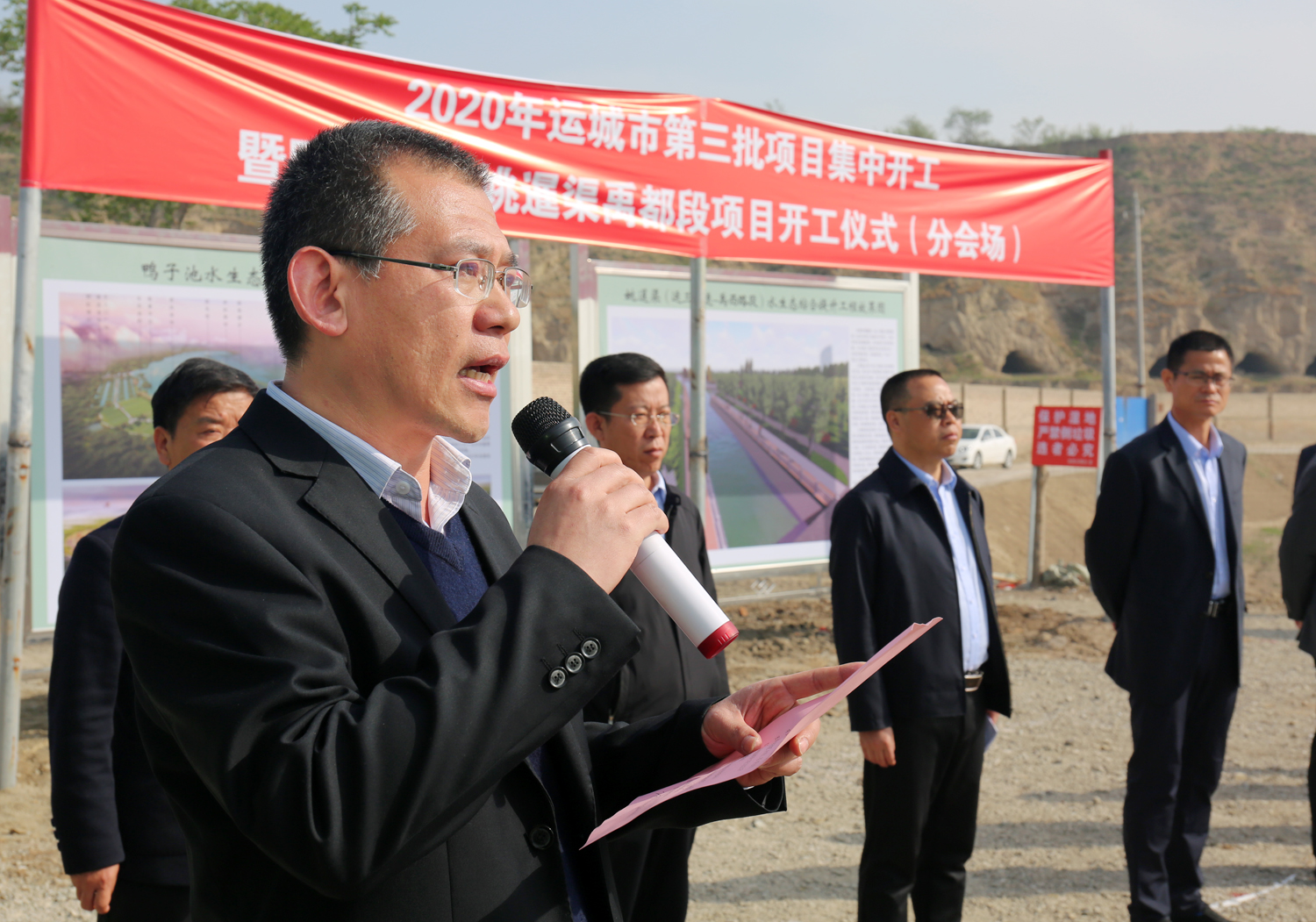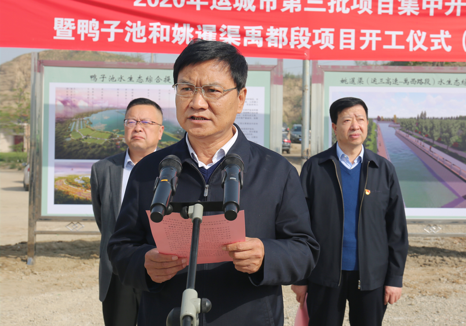 4月15日,在全市第三批重點(diǎn)項(xiàng)目集中開(kāi)工分會(huì)場(chǎng),鴨子池北口,我公司實(shí)施的“1311”重點(diǎn)工程項(xiàng)目姚暹渠(運(yùn)三高速-禹西路)水環(huán)境綜合治理PPP項(xiàng)目和鴨子池水生態(tài)綜合提升工程PPP項(xiàng)目舉行開(kāi)工儀式,市水務(wù)局局長(zhǎng)靳虎剛,市水投公司董事長(zhǎng)崔作銘、副總經(jīng)理呂希汶,運(yùn)城經(jīng)開(kāi)區(qū)管委會(huì)副主任張大虎、鹽湖區(qū)水務(wù)局局長(zhǎng)王杰妮,安邑辦事處主任孔繁榮、東郭鎮(zhèn)鎮(zhèn)長(zhǎng)薛世鵬,兩個(gè)工程的項(xiàng)目管理公司高強(qiáng)、胡峰偉董事長(zhǎng),山西建工西北分公司李興波經(jīng)理等部門領(lǐng)導(dǎo)參加了開(kāi)工儀式。開(kāi)工儀式由市水投公司副總經(jīng)理范永勝主持。
